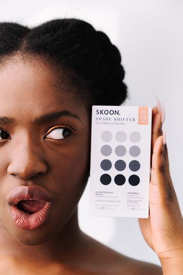 Revolutionise your sun protection with SKOON. TINTERBELL Colour-Me-Perfect Booster Drops. These feather-light drops eliminate the "white cast" dilemma by turning your SUNNYBONANI SPF40+ into a tinted sunscreen that matches your unique shade