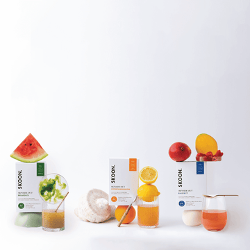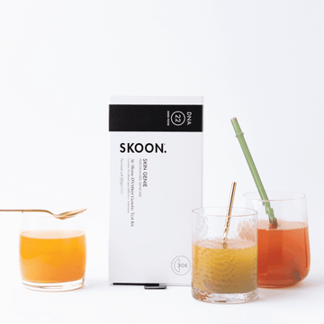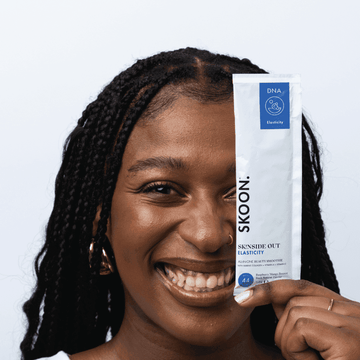 In a nutshell - SKOON.'s All-in-One Beauty Smoothies, with 44 pro-collagen actives (45 for Breakouts!) including marine collagen, 10+ antioxidants, vitamins, minerals + probiotics (2 billion CFU per sachet) to help keep skin plump + firm (ELASTICITY); to help clear bumps and blemishes (BREAKOUTS) and to even out skin tone + brighten dark marks (HYPERPIGMENTATION).