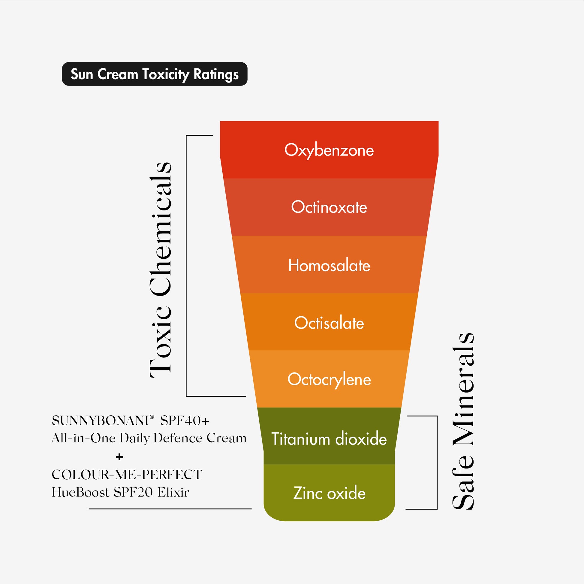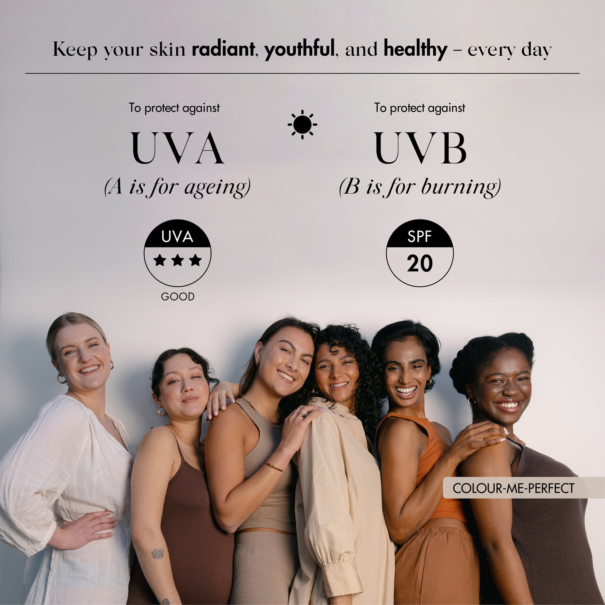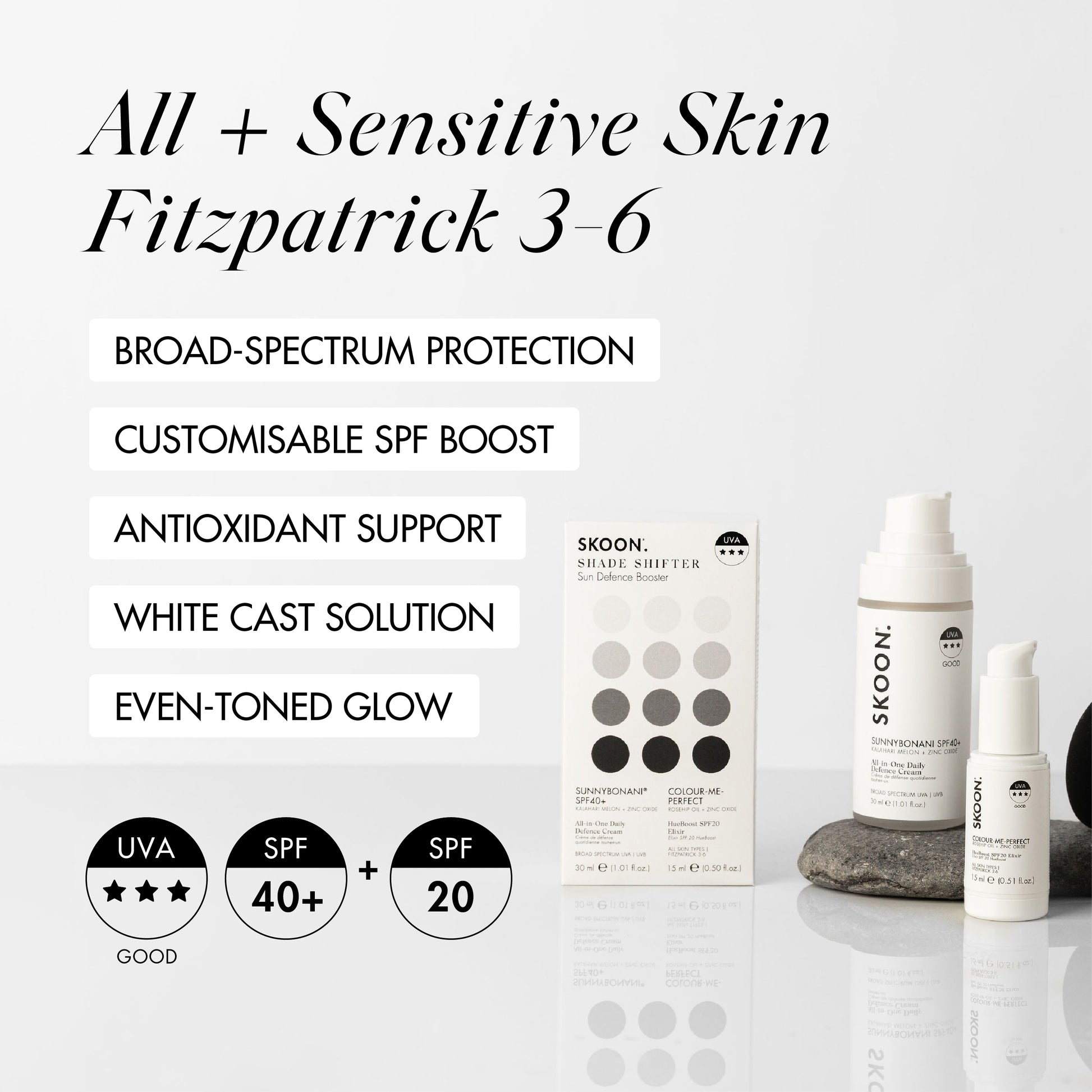+It’s a customisable SPF duo featuring SUNNYBONANI® SPF40+ and COLOUR-ME-PERFECT HueBoost SPF20. Together, they allow you to adjust your sun protection level and tint to suit your skin tone and daily needs.