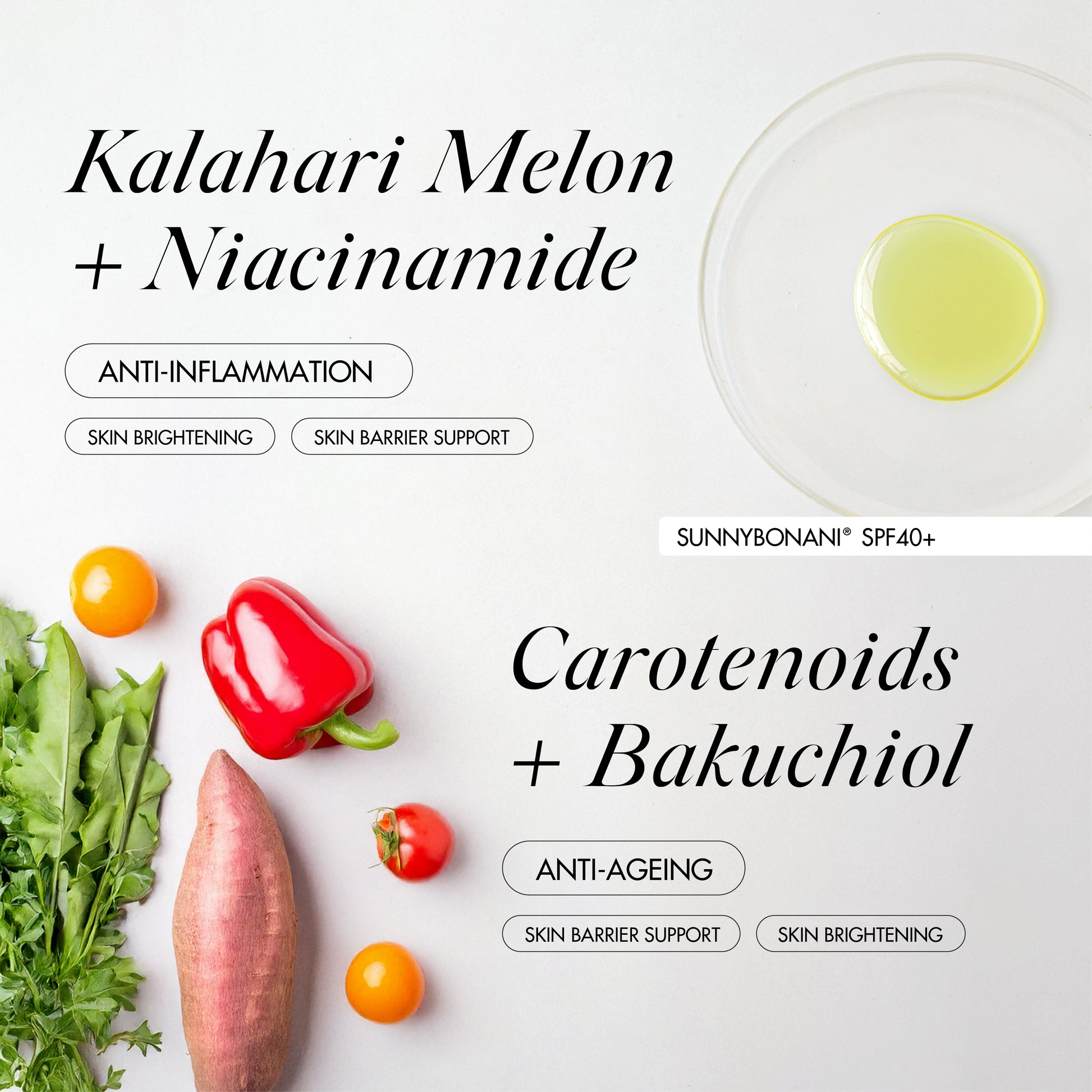 Niacinamide brightens, Carotenoids boost radiance and strengthen your barrier, while Rice Silk smooths and controls shine—for a balanced, luminous complexion that glows from within.